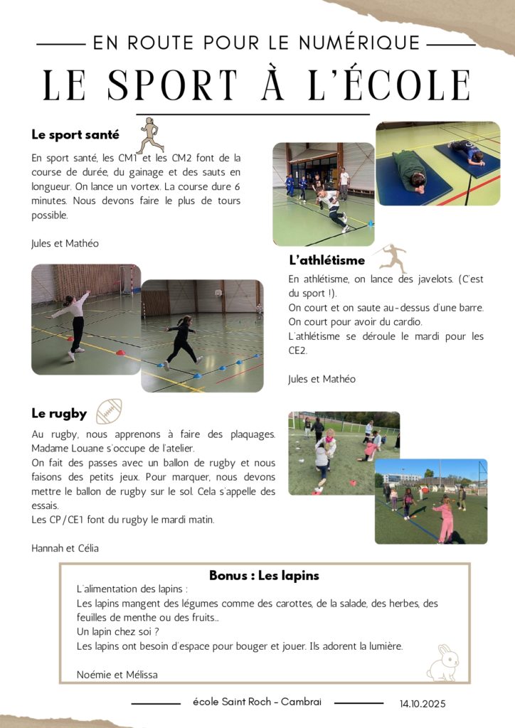 Leur travail s’est concrétisé par la création d’un article sur le sport à l’école Saint Roch !