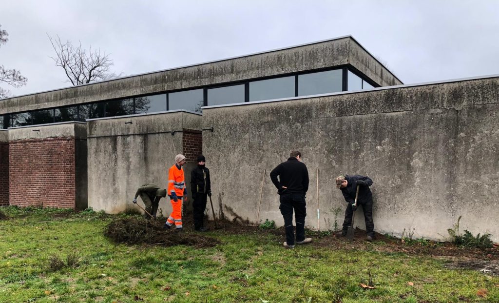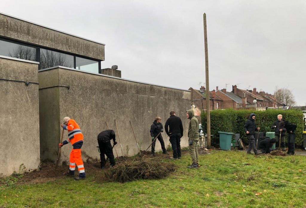 Les apprentis en CAPa JP 1ère année du lycée Ste Croix , sous la houlette de Mme Parmentier, ont participé à une activité concrète et porteuse de sens au profit de notre école : plantation d’arbres fruitiers et de petits fruits en racines nues![]()