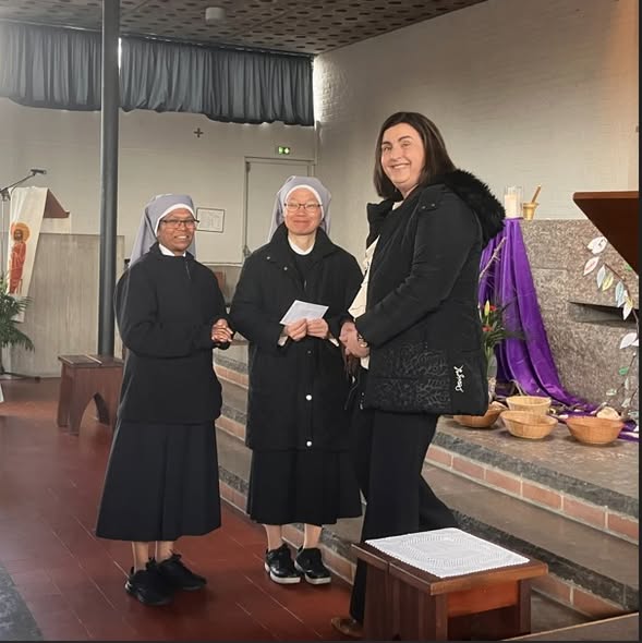 La remise du chèque de 370 €, fruit de l’engagement et de la générosité des élèves, a eu lieu lors de la messe des familles et des Rameaux le dimanche 29 mars.